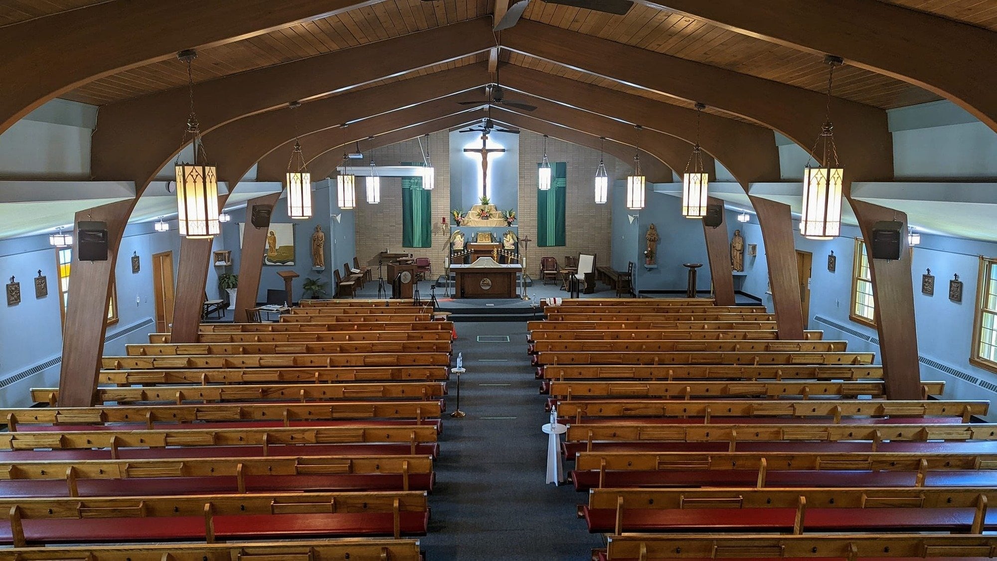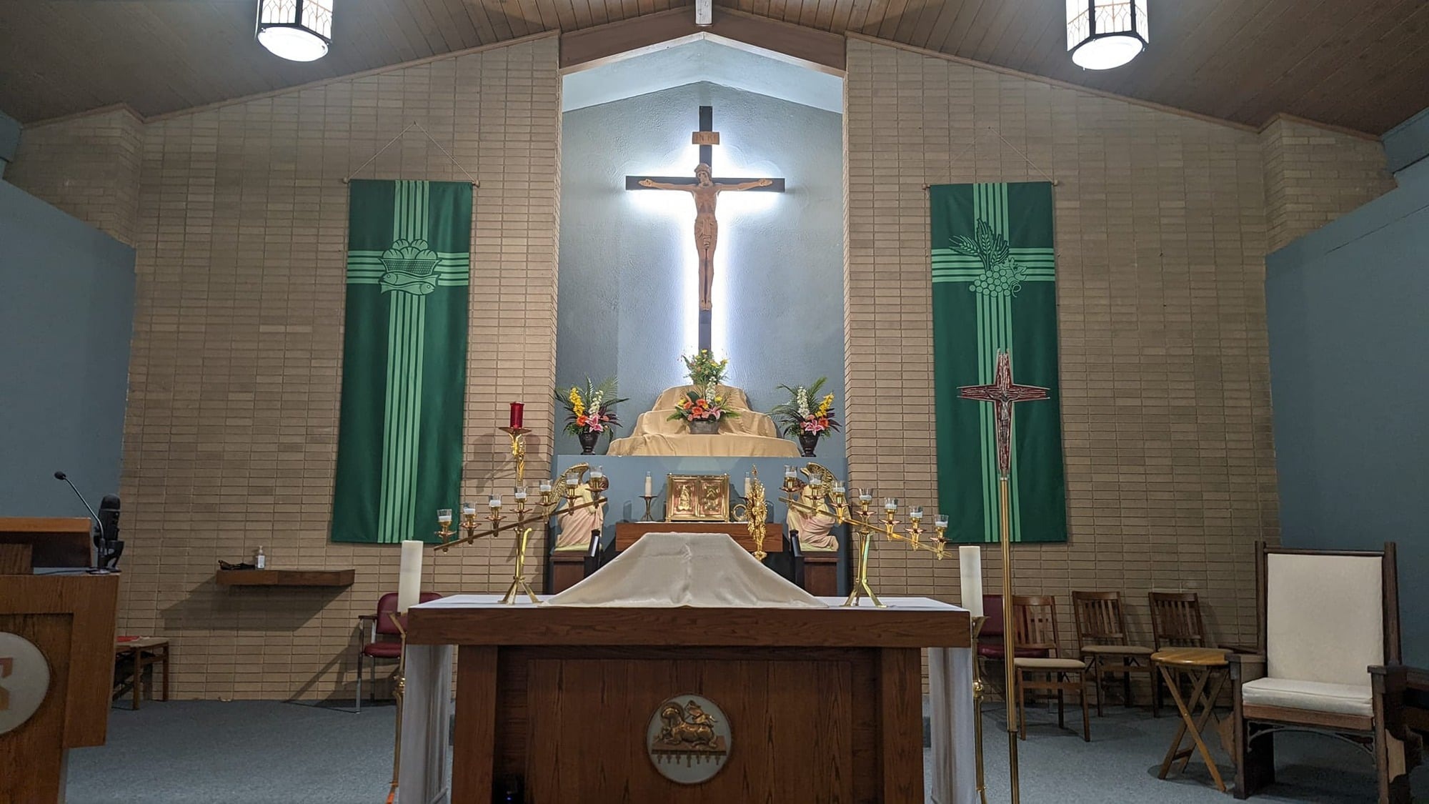 Les premiers paroissiens enregistrés furent Pamphile et Doris Duguay, Albert et Délia Cousineau et M. et Mme Louis Frenette. Une chorale fut formée sous l’habile direction de M. Maurice Lacasse, accompagnée à l’orgue par Mme Charlotte Mongenais. Les premiers paroissiens assistèrent d’abord à la messe dominicale dans le gymnase de l’ancienne école Saint-Rosaire, puis à la salle Casa Romana, dans l’église slovaque de S.S. Cyrille et Méthode, grâce à la bienveillante hospitalité du curé Kurta et, le premier novembre, dans le tout nouveau Centre canadien-français.