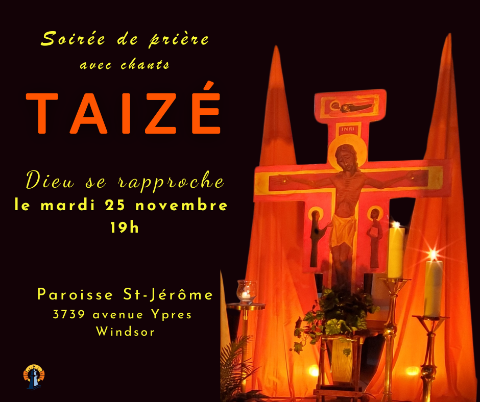 Les choristes de toute paroisses et de tous âges sont invité(e)s à venir pratiquer les chants de Taizé avant la prière du 25 novembre.